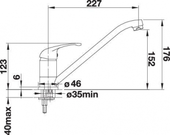Otočné raménko o 360° Je zapotřebí otvor o průměru 35 mm Kartuš BLANCO s keramickým těsněním Pružné připojovací hadice o délce 350 mm a s 3/8‘‘ maticí pro mimořádně snadnou a bezpečnou montáž