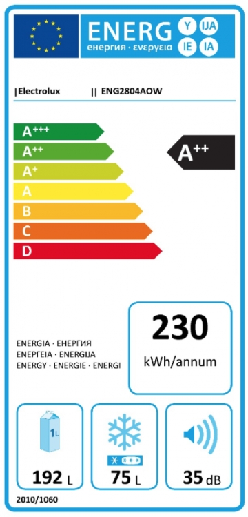 Hrubý objem chladničky/mrazničky (l): 189/73