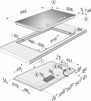 Elegantní design, plynová varná deska z tvrzeného skla – šířka 942 mm