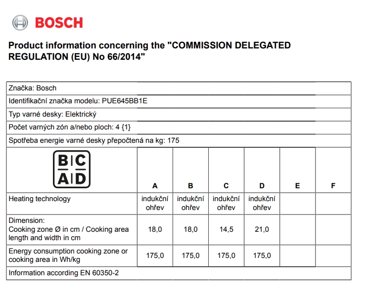 varné zóny: 1 x O 180 mm, 1.8 kW (max. výkon 3.1 kW) indukční varná zóna; 1 x O 180 mm, 1.8 kW (max. výkon 3.1 kW) indukční varná zóna; 1 x O 145 mm, 1.4 kW (max. výkon 2.2 kW) indukční varná zóna;1 x O 210 mm, 2.2 kW (max. výkon 3.7 kW) indukční varná zóna