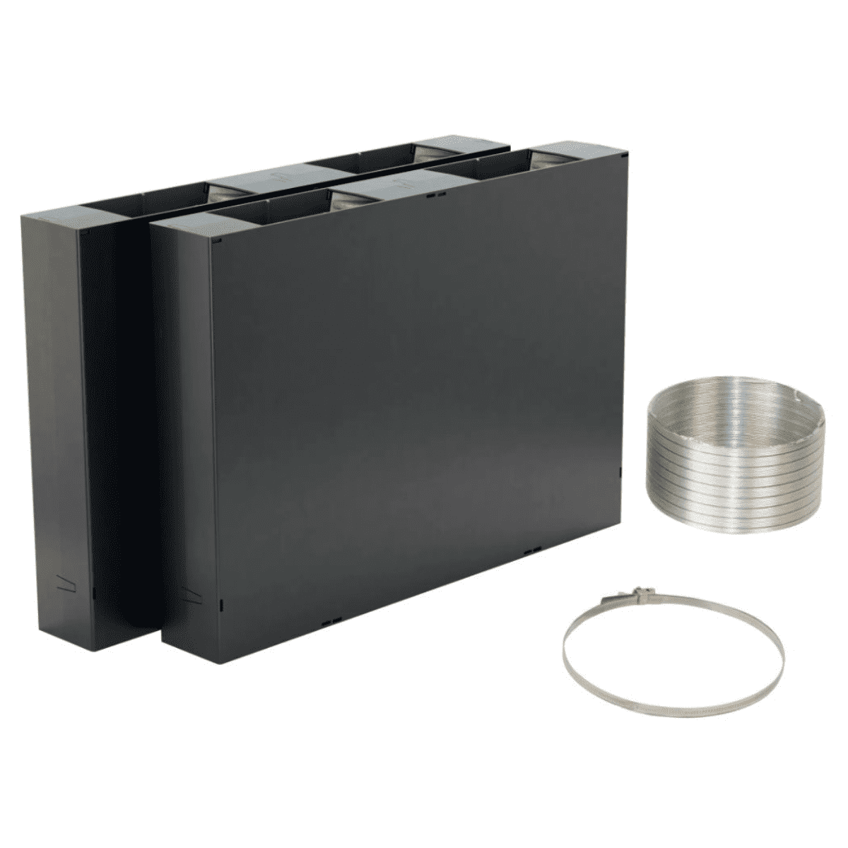 základní sada pro recirkulaci vzduchu se skládá ze 2 plastových pouzder s 8 cleanAir Plus filtry, pružné hliníkové hadice a hadicové svorky