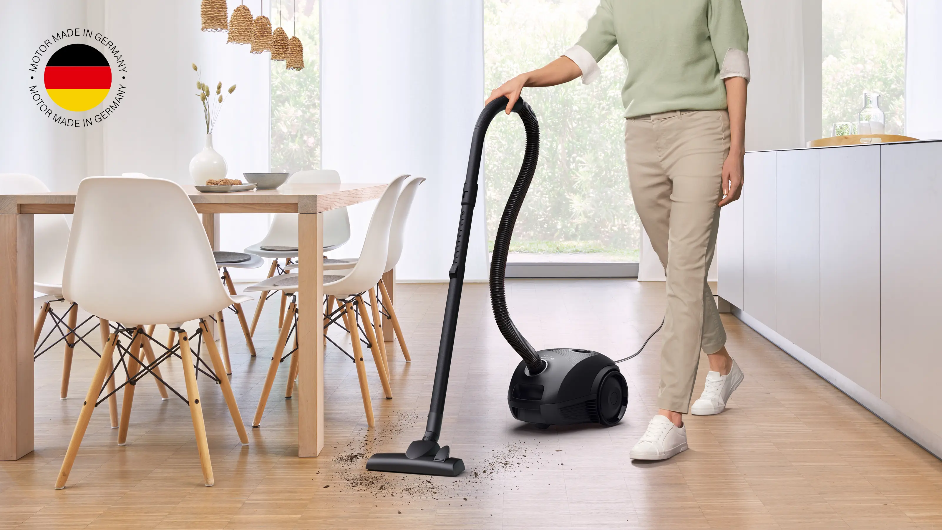 Kompaktní, vysoce výkonný sáčkový vysavač vyrobený v Německu. Zařídí bezproblémový a důkladný úklid.