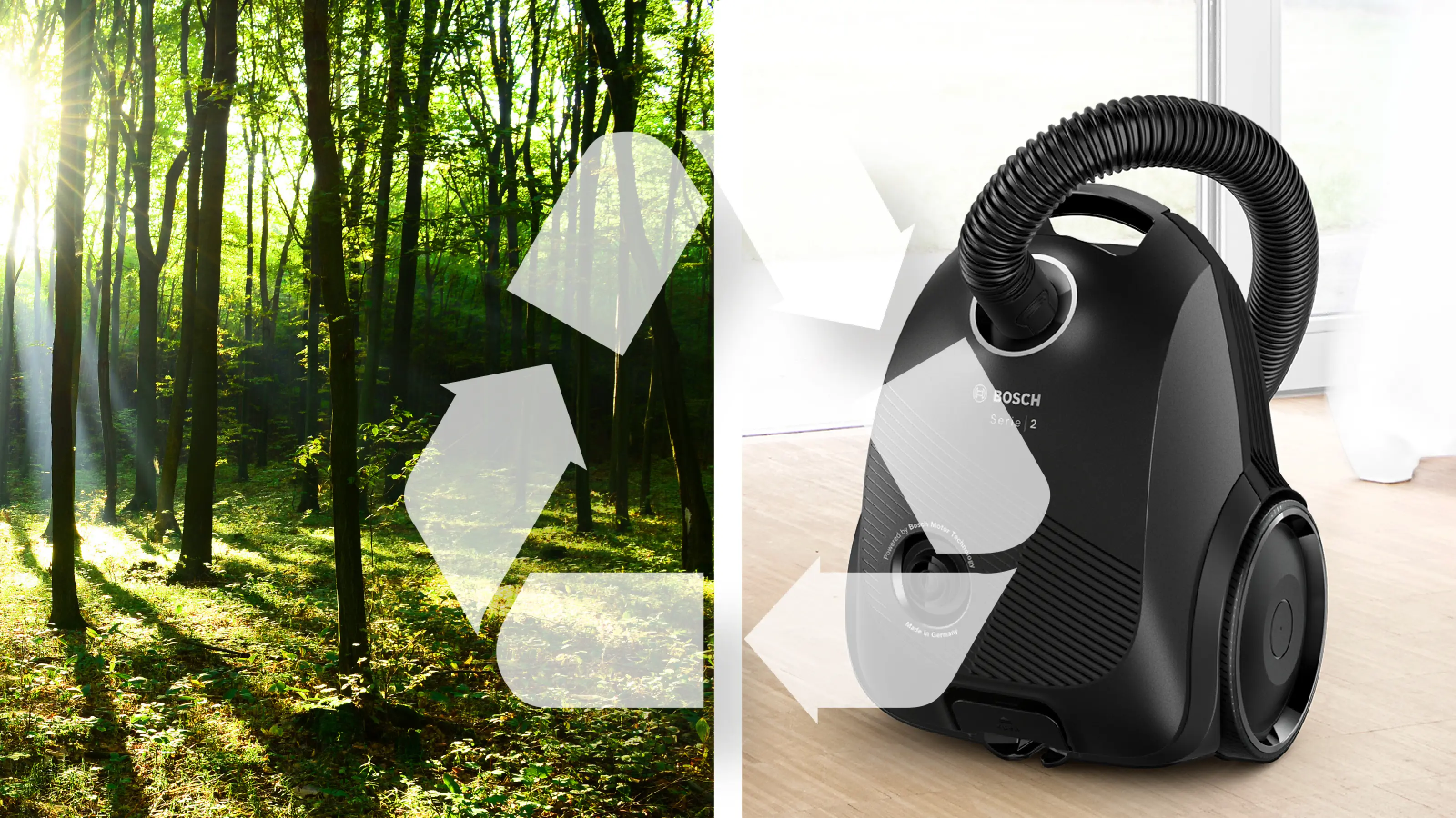 Udržateľné materiály a motor s dlhou životnosťouSpoločnosť Bosch sa zaviazala k trvalej udržateľnosti, a preto sú jej výrobky navrhnuté tak, aby boli šetrné k životnému prostrediu. Tento vysávač je vyrobený zo 48 % z recyklovaného plastu a obal je skutočne 100 % recyklovateľný. A vďaka motoru Bosch s dlhou životnosťou sa budete zo stroja tešiť dlho. | ![]() |