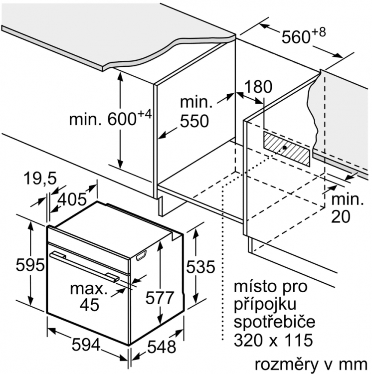 rozměry niky (V x Š x H): 585 mm - 595 mm x 560 mm - 568 mm x 550 mm