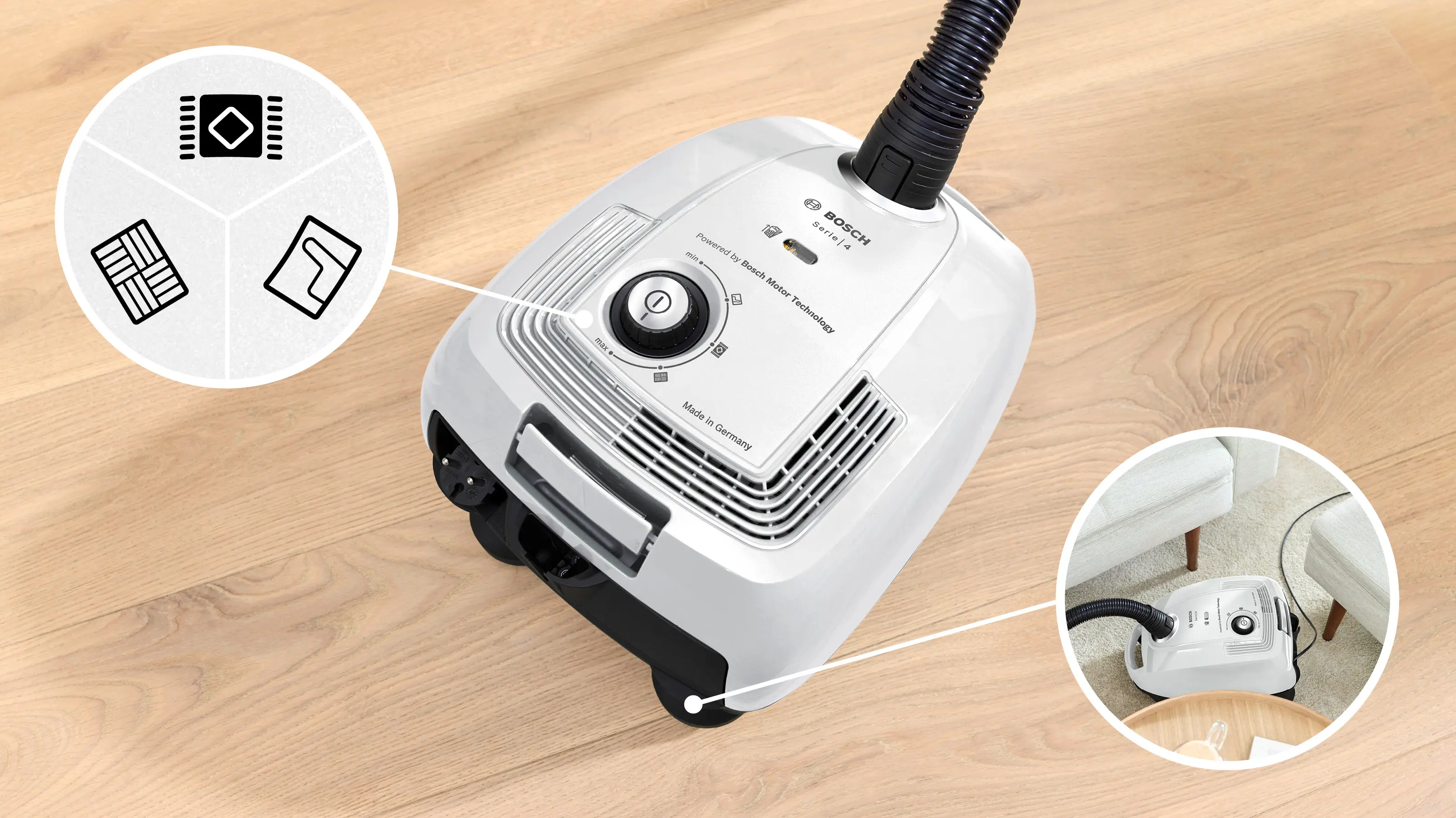 ![]() | Technológia motorov Bosch - výkon vyrobený v Nemecku.Vychutnajte si silný a konštantný výkon vysávačov Bosch: po 65 rokoch vývoja a výroby vysoko výkonných motorov v Nemecku očakávame od našich vysávačov nielen optimálne výsledky vysávania, ale aj dlhú životnosť, čo zaručujeme 10 rokmi záruky na motor *. * Záručné podmienky na https://www.bosch-home.com/cz/novinky/zaruka-motor-vysavace-bosch |