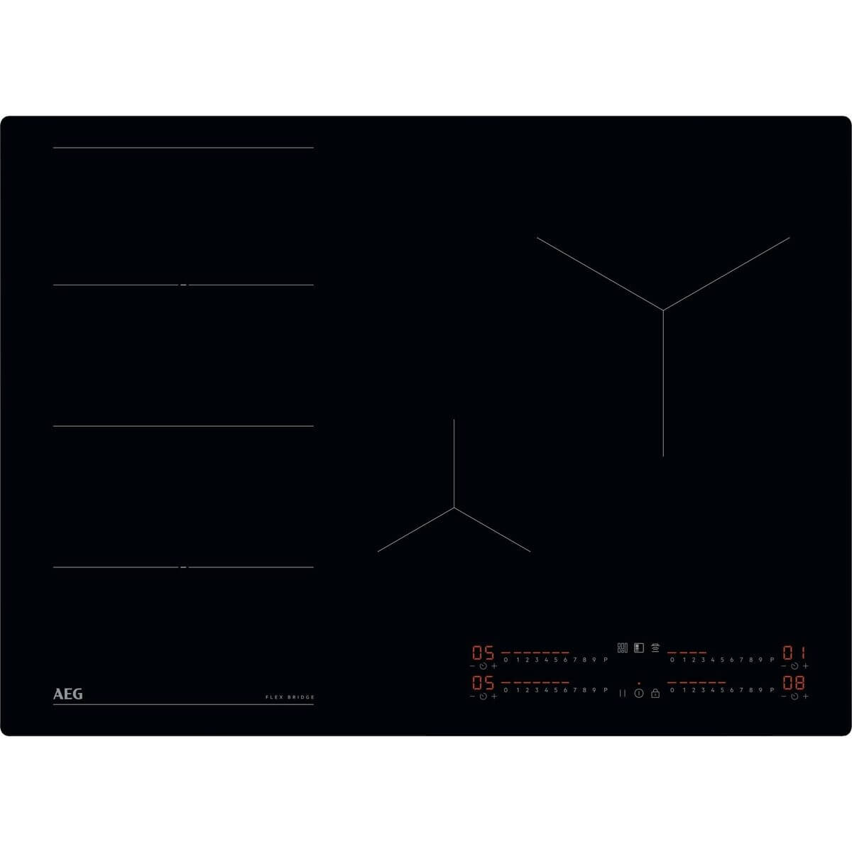 - Funkce FlexiBridge® umožňuje přizpůsobit si varnou zónu, kombinovat a ovládat až 4 segmenty různými způsoby. Je ideální pro velké nebo dlouhé pánve, nebo když potřebujete vařit několik pokrmů najednou.