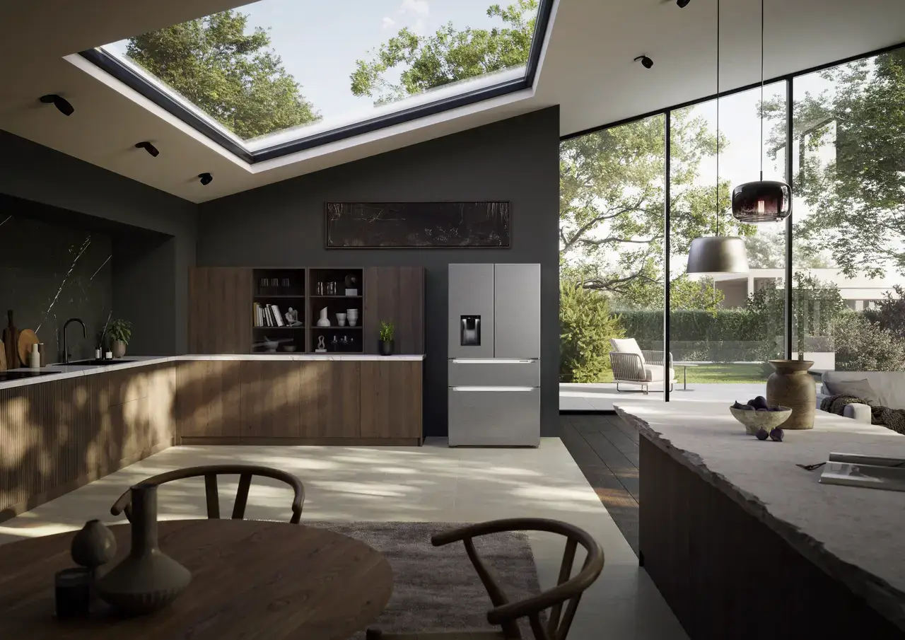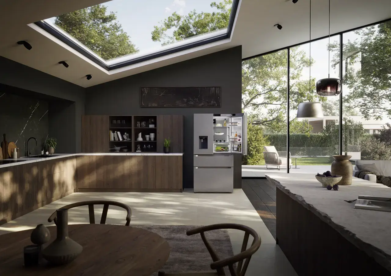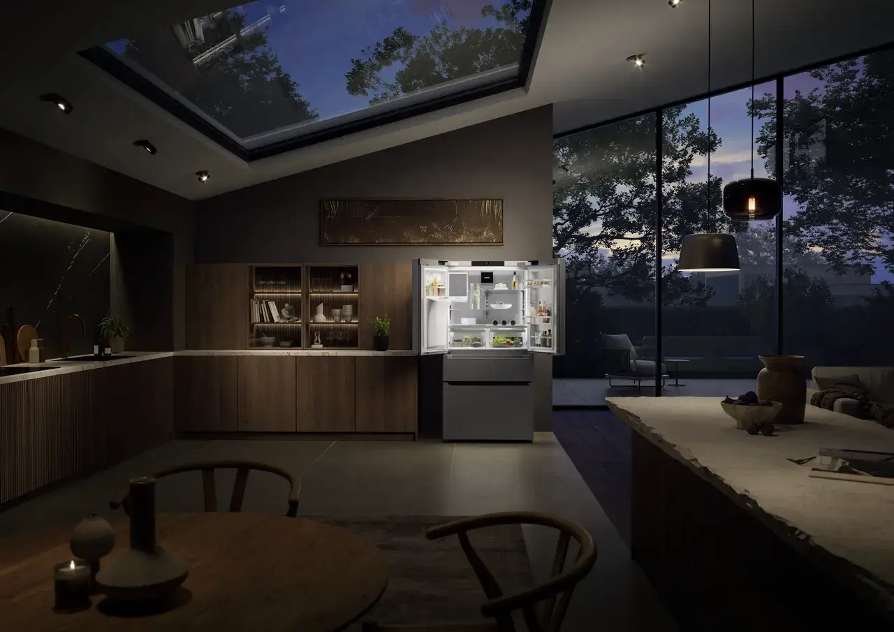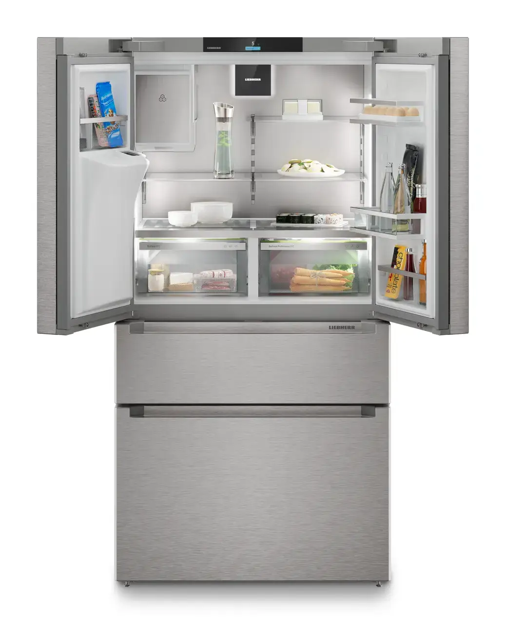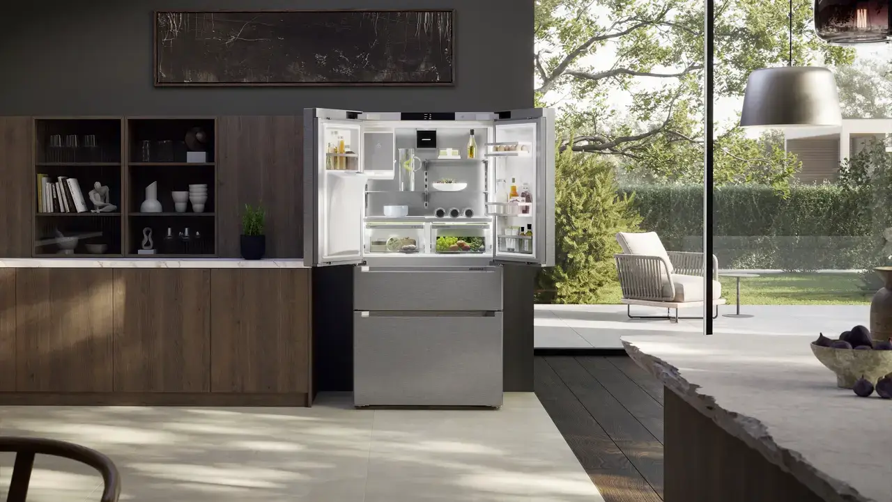 | Skupina výrobku | Chladnička s mrazničkou ve francouzských dveřích se 2 mrazicími zásuvkami a dávkovačem vody a kostek ledu |