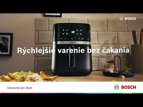 Vařte zdravě s horkovzdušnou fritézou Bosch, která vyžaduje minimální nebo dokonce žádný olej, díky vysokorychlostní cirkulaci vzduchu.