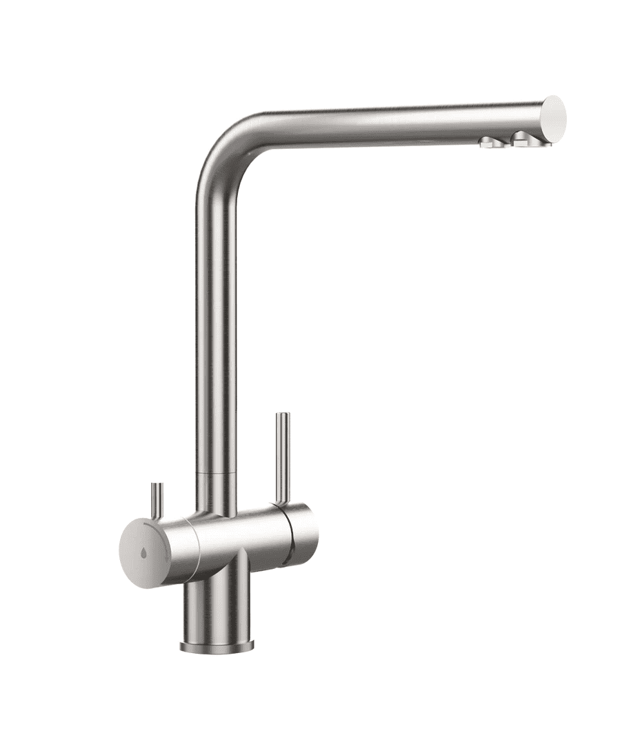 Dvojitá kuchyňská ekologická baterie s vysokým ramínkem a připojením na filtrovanou vodu