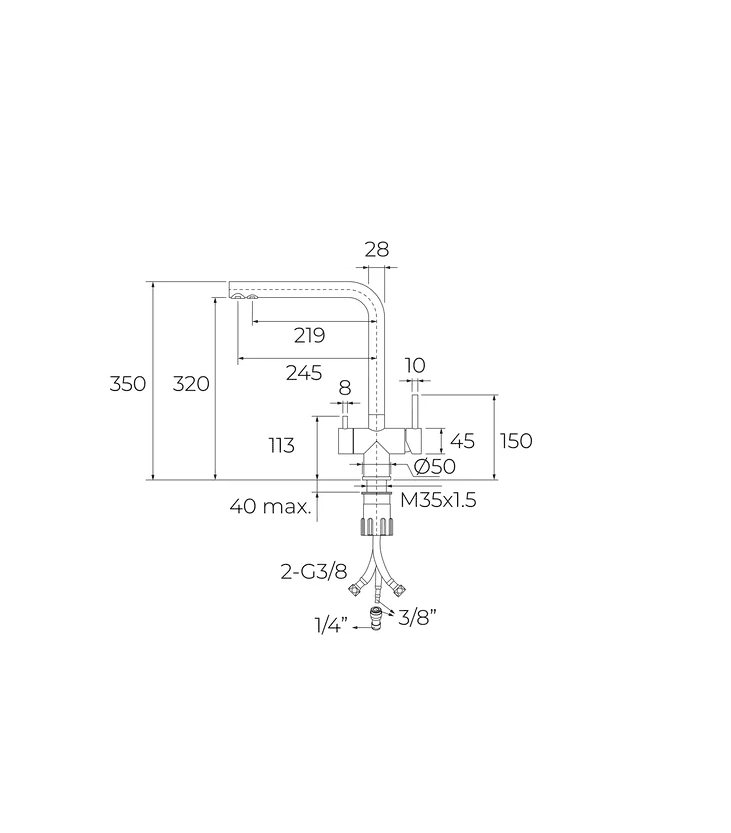 3cestné připojení, kompatibilní s filtračními jednotkami pod dřezem