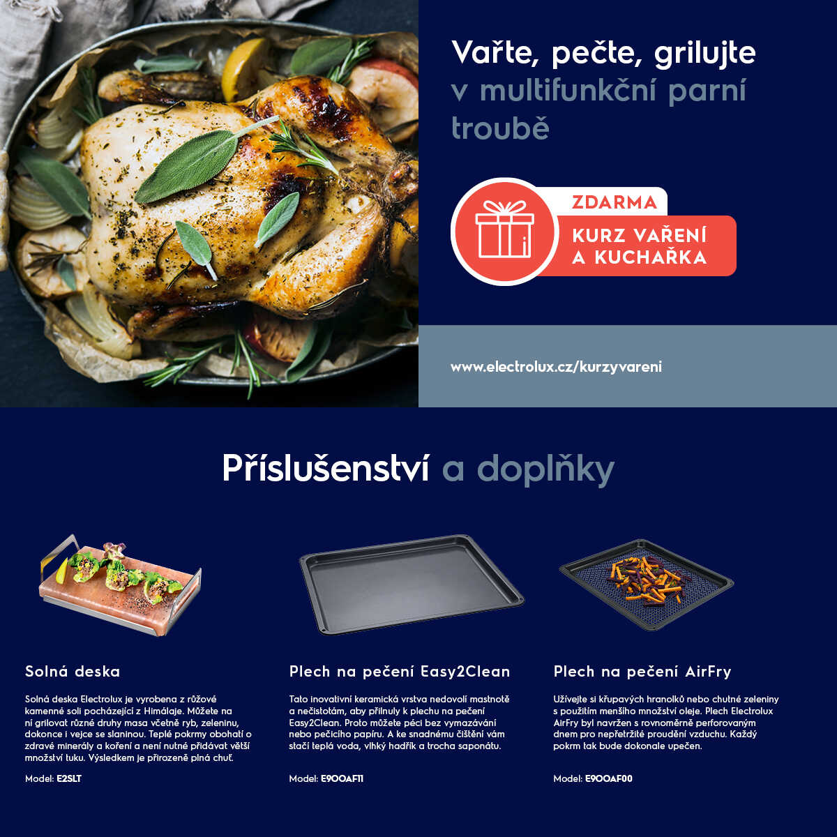 Funkce troubyGratinovaná jídla, Spodní ohřev, Pečení chleba, Tradiční pečení, Rozmrazování, Kynutí těsta, Mrazené pokrmy, Gril, Uchovat teplé, Vlhké horkovzdušné pečení, Pečení pizzy, Ohřev talířů, Zavařování, Pomalé pečení, Pravé horkovzdušné pečení, Turbo gril