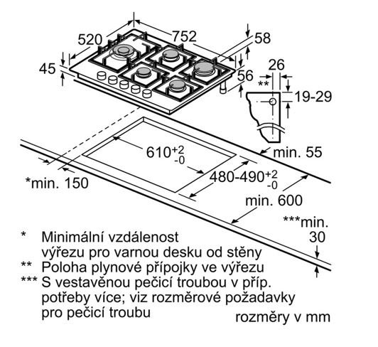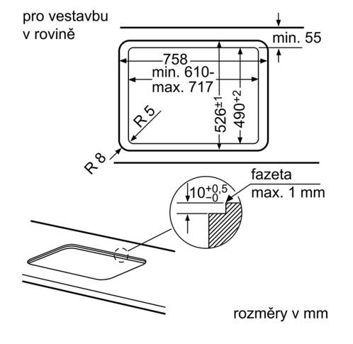 rozměry pro vestavbu (Š x H) : 610 mm x 480 mm