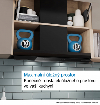 pro instalaci odsavače par do vyšších nástěnných skříněk lze jako volitelné příslušenství dokoupit prodloužení komínu