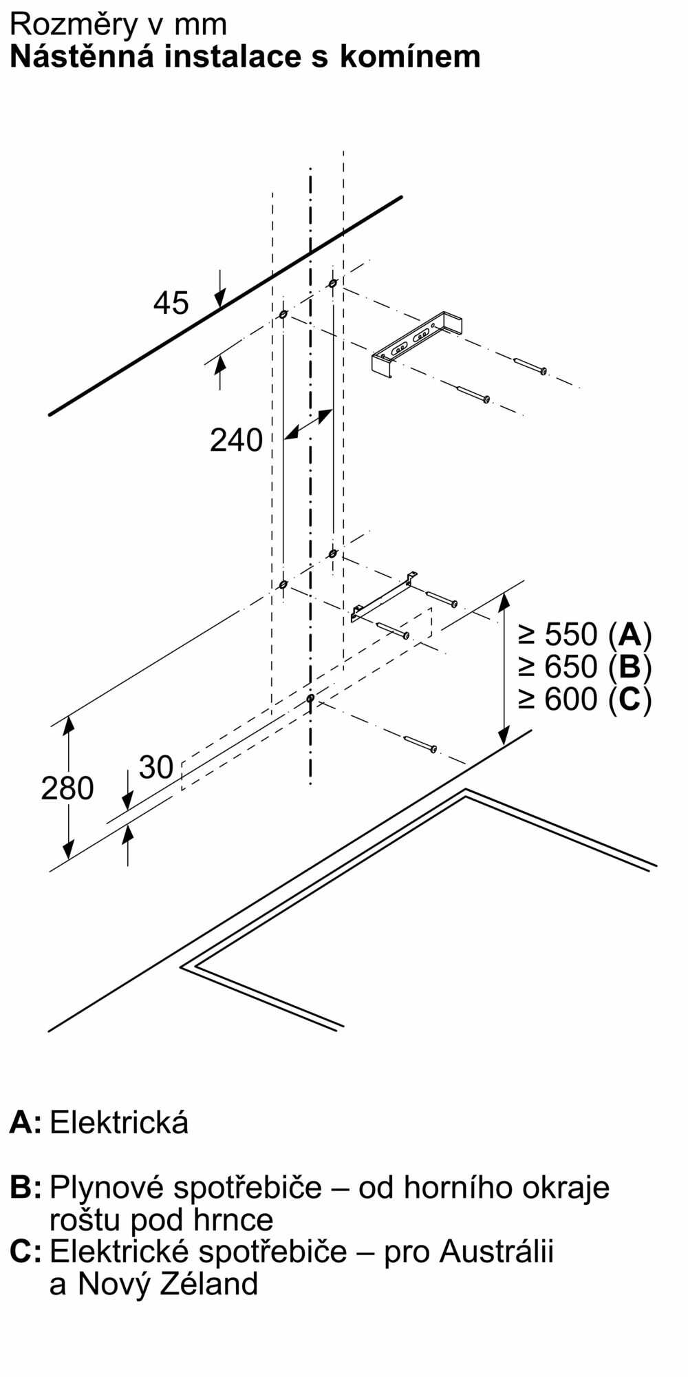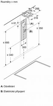 rozměry spotřebiče pro odvětrávání (V x Š x H): 635-895 x 598 x 500 mm