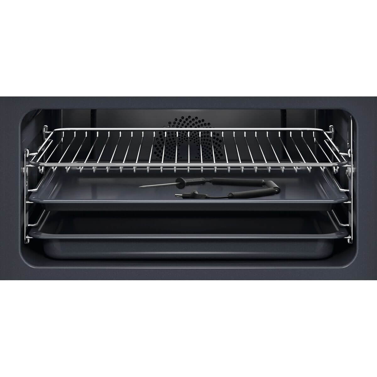 Výbava trouby - plechy: 1 smaltovaný koláčový plech na pečení, 1 odkapávací pekáč šedý smalt