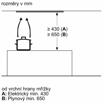 | Minimálna vzdialenosť nad plynovou varnou doskou | 650 mm |