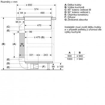 | Minimálna výška výklenku | 490 mm |