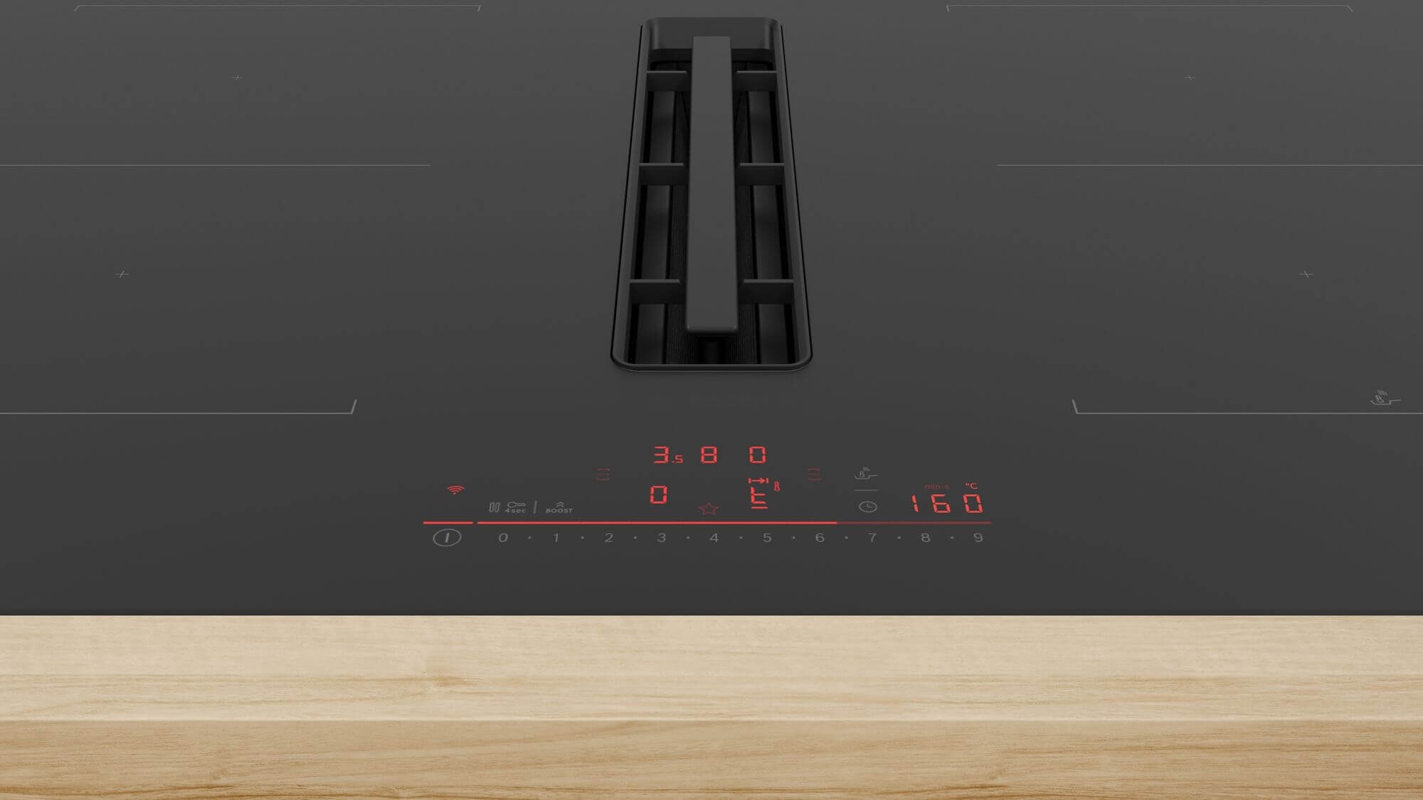 Indukční varná deska s plně integrovaným vysoce výkonným systémem odvětrání par.