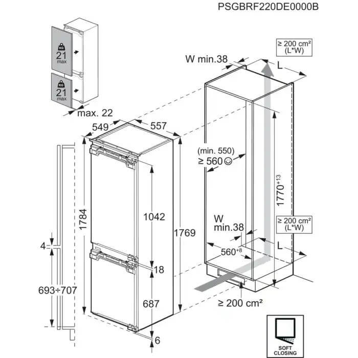 Rozměry spotřebiče VxŠxH (mm): 1769 x 557 x 549