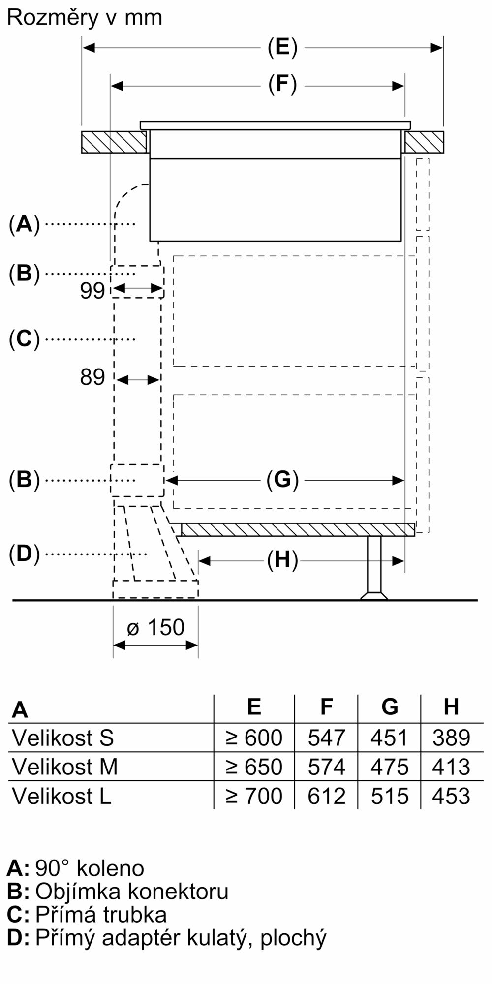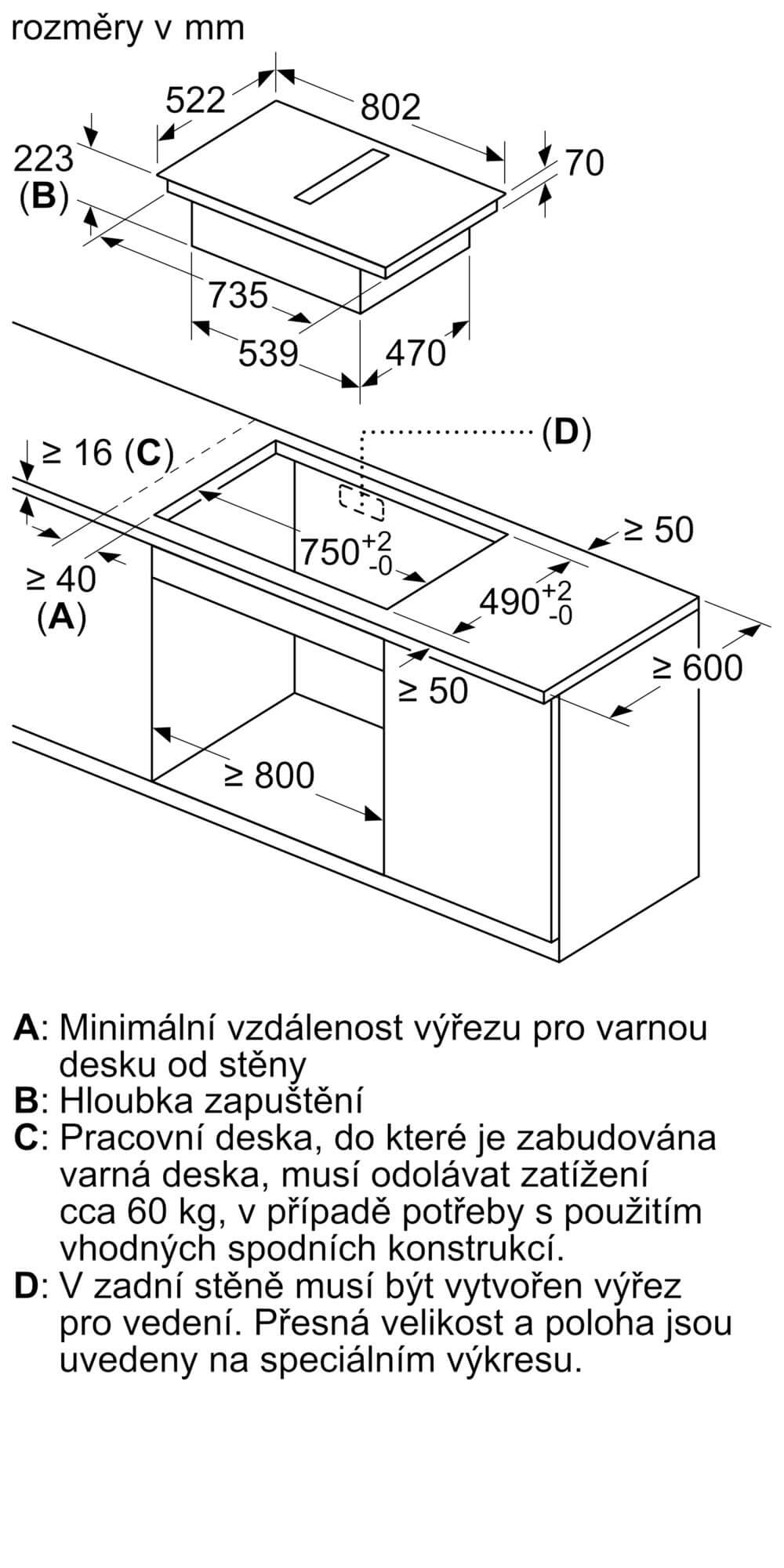 rozměry spotřebiče (V x Š x H): 223 x 802 x 522 mm